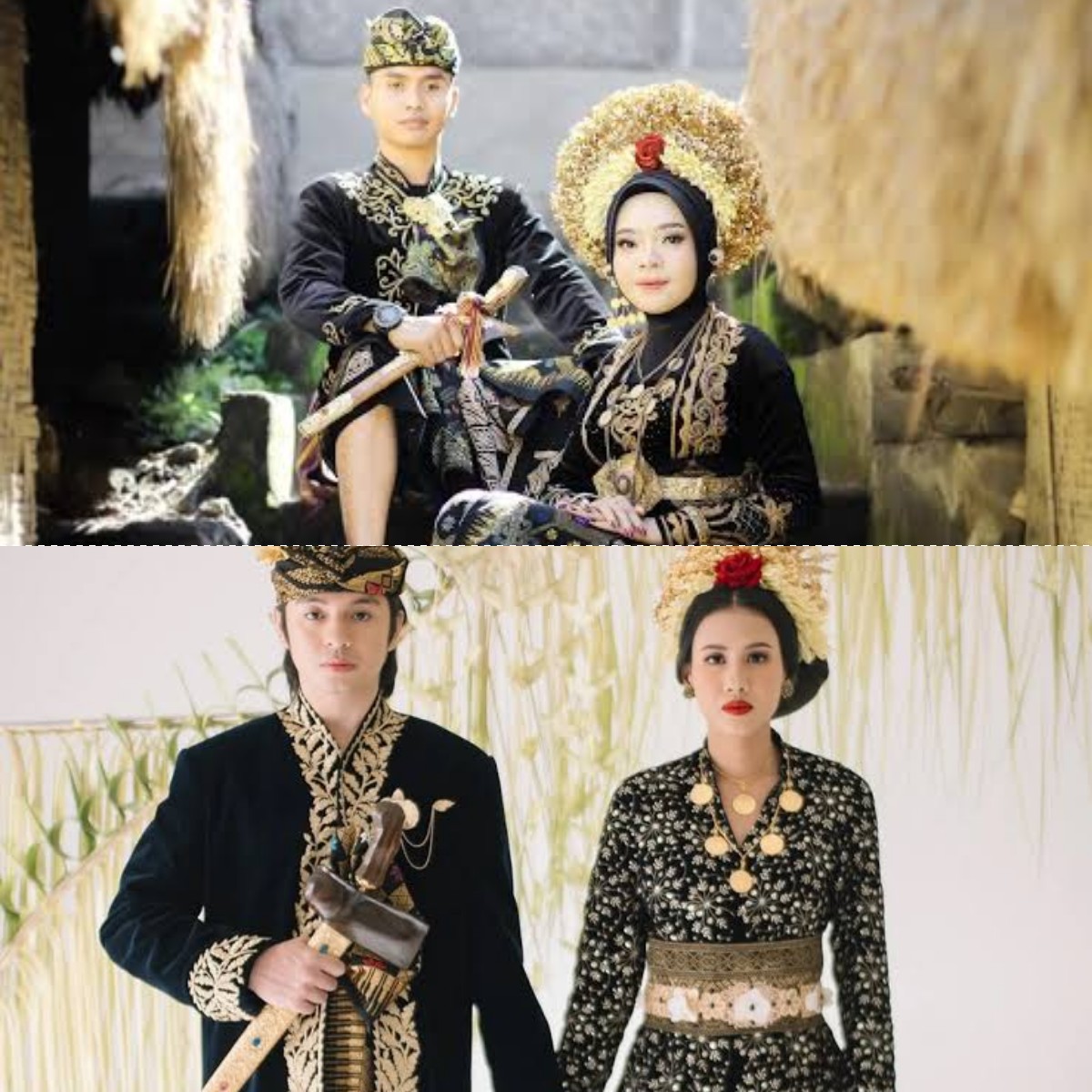 Pengantin perempuan akan duduk bersimpuh dengan pakaian adat, sementara rambutnya ditata sedemikian rupa dengan lilitan khas yang disebut *pengon*.