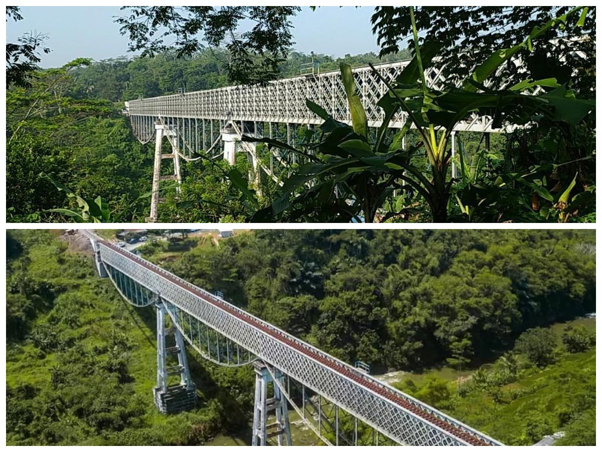 Konstruksi truss baja yang digunakan memungkinkan jembatan ini menahan beban berat kereta api maupun kendaraan bermotor.