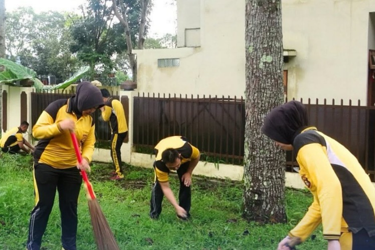 Foto : Giat pembersihan jajaran Polres Pagar Alam dilingkungan Mapolres.--pagaralampos.com
