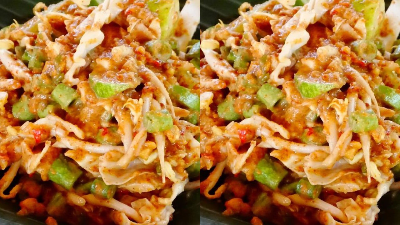 Dan Sayuran mentah seperti kacang panjang, tauge, dan mentimun disiram bumbu kacang yang pedas-gurih. Yang Segar, sehat, dan pedasnya bikin nagih!