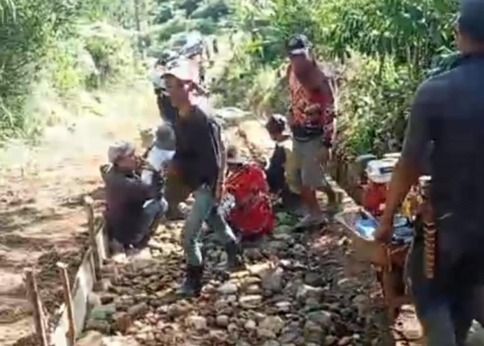 LAHAT, PAGARALAMPOS.COM - Prihatin dengan kondisi jalan Satuan Permukiman (SP) 3 hingga SP 6, buat warga Desa Makmur, Kecamatan Gumay Talang, Lahat berinsiatif lakukan upaya perbaikan jalan secara swadaya. perbaikan ruas jalan rusak yang kini berlumpur akibat hujan selalu turun ini, dilakukan secara gotong-royong oleh warga setempat, menggunakan material krokos.