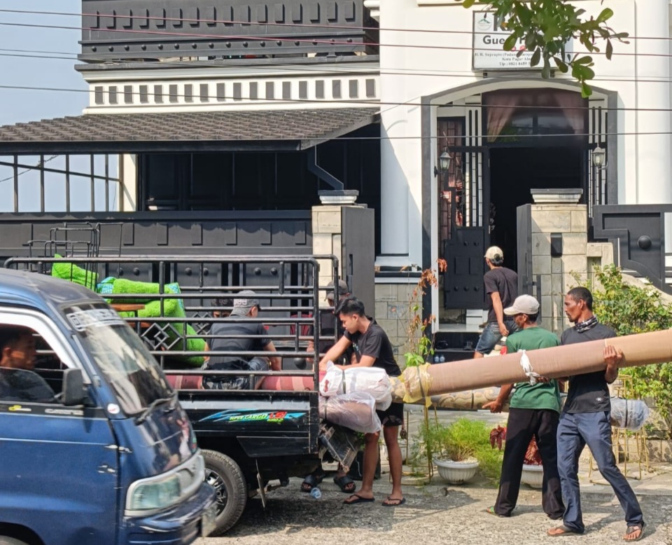 Berikut barang barang seperti perabot dan moubilier didalam homestay dievakuasi keluar. Pemandangan tersebut menjadi tontona warga dan pengguna jalan yang melintas di lokasi.