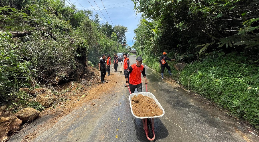 Polsek - BPBD Bersihkan Material Longsor, Jalan Lintas Negara Normal