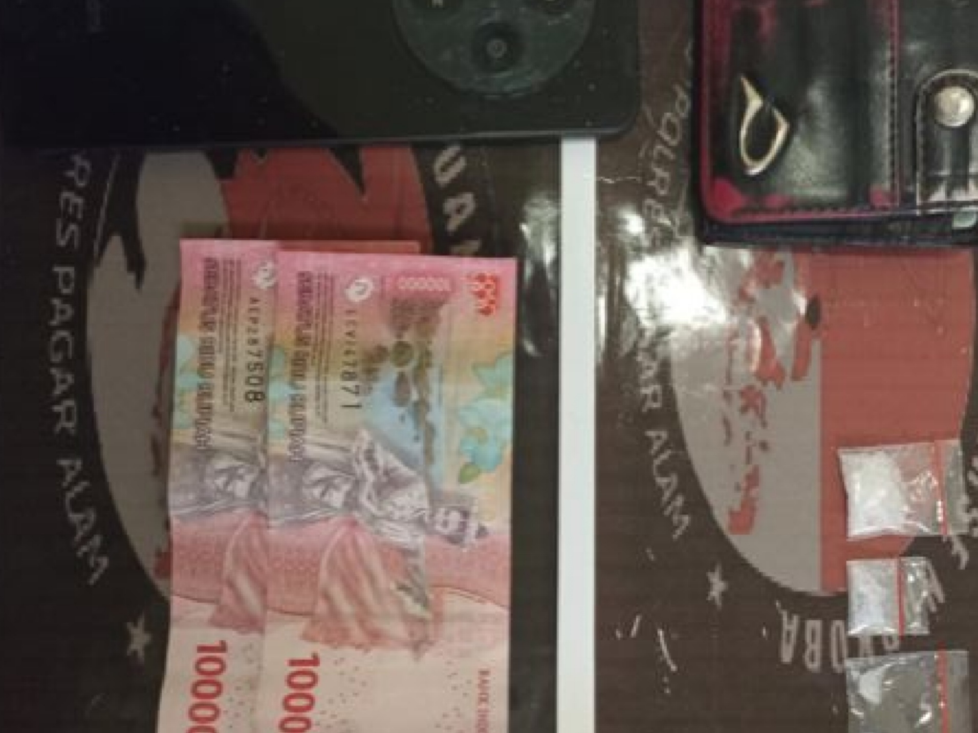 Dari hasil penggeledahan, petugas kembali menemukan barang bukti berupa satu buah dompet yang didalamnya terdapat satu paket sabu dan uang tunai sebesar Rp200.000, serta sepaket sabu didalam kotal kotak rokok merek Surya Gudang Garam.